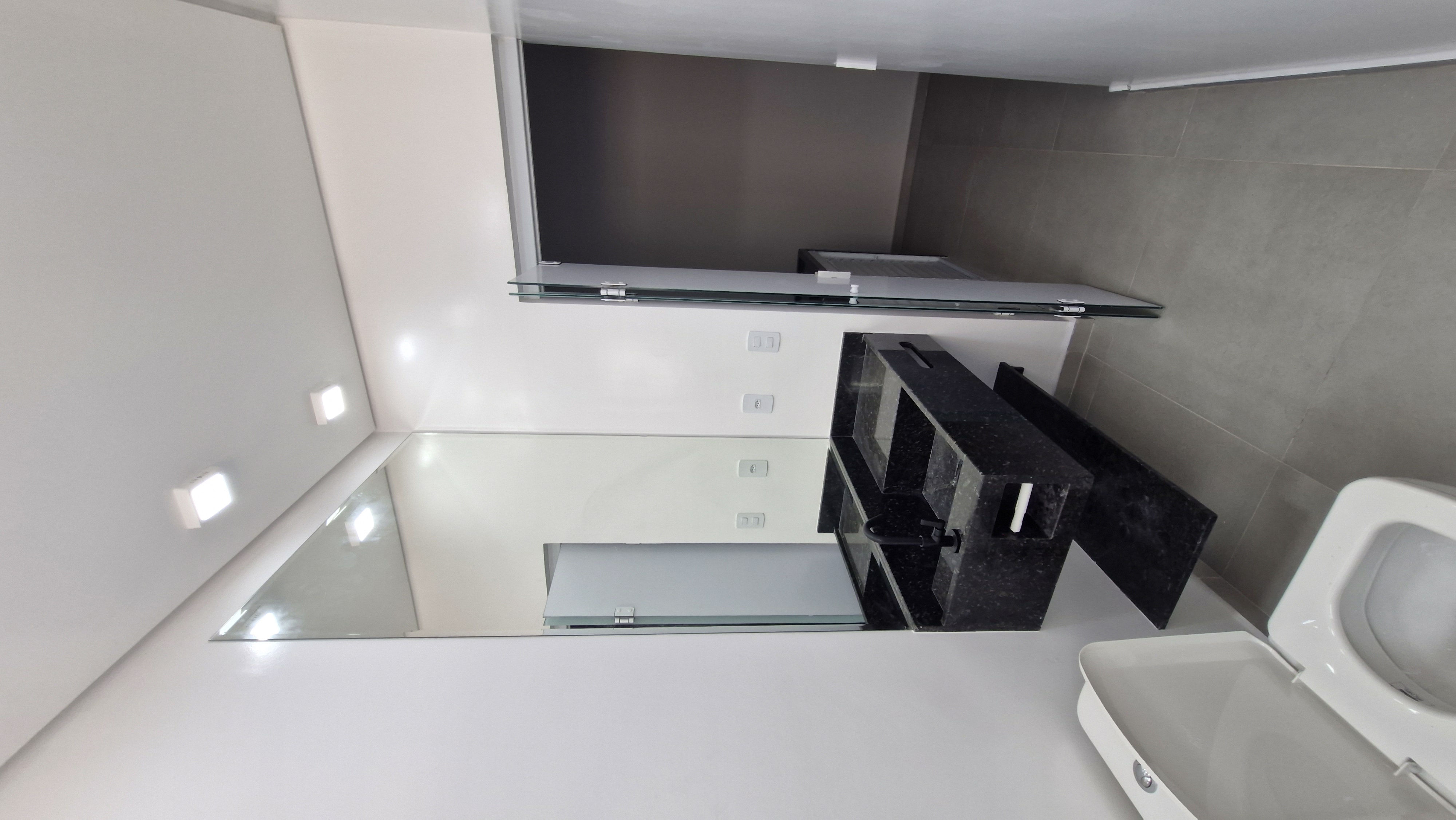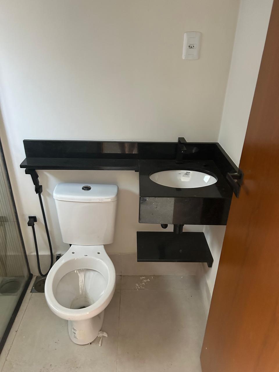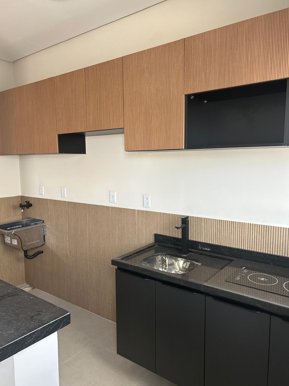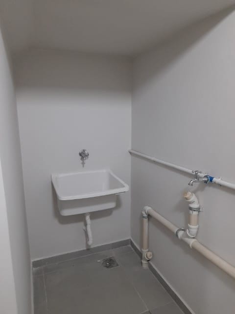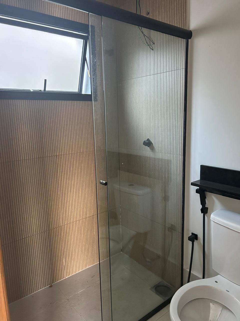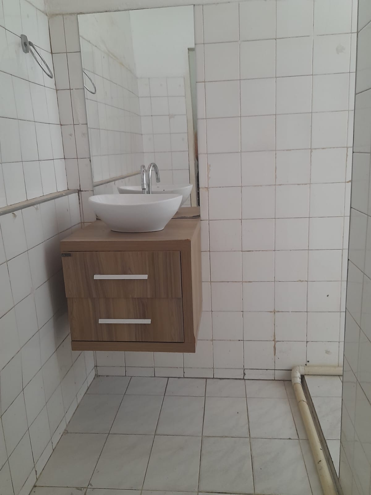 Descrição: Kitnet conjugada pia em granito, banheiro com box de vidro e lavanderia comunitária.