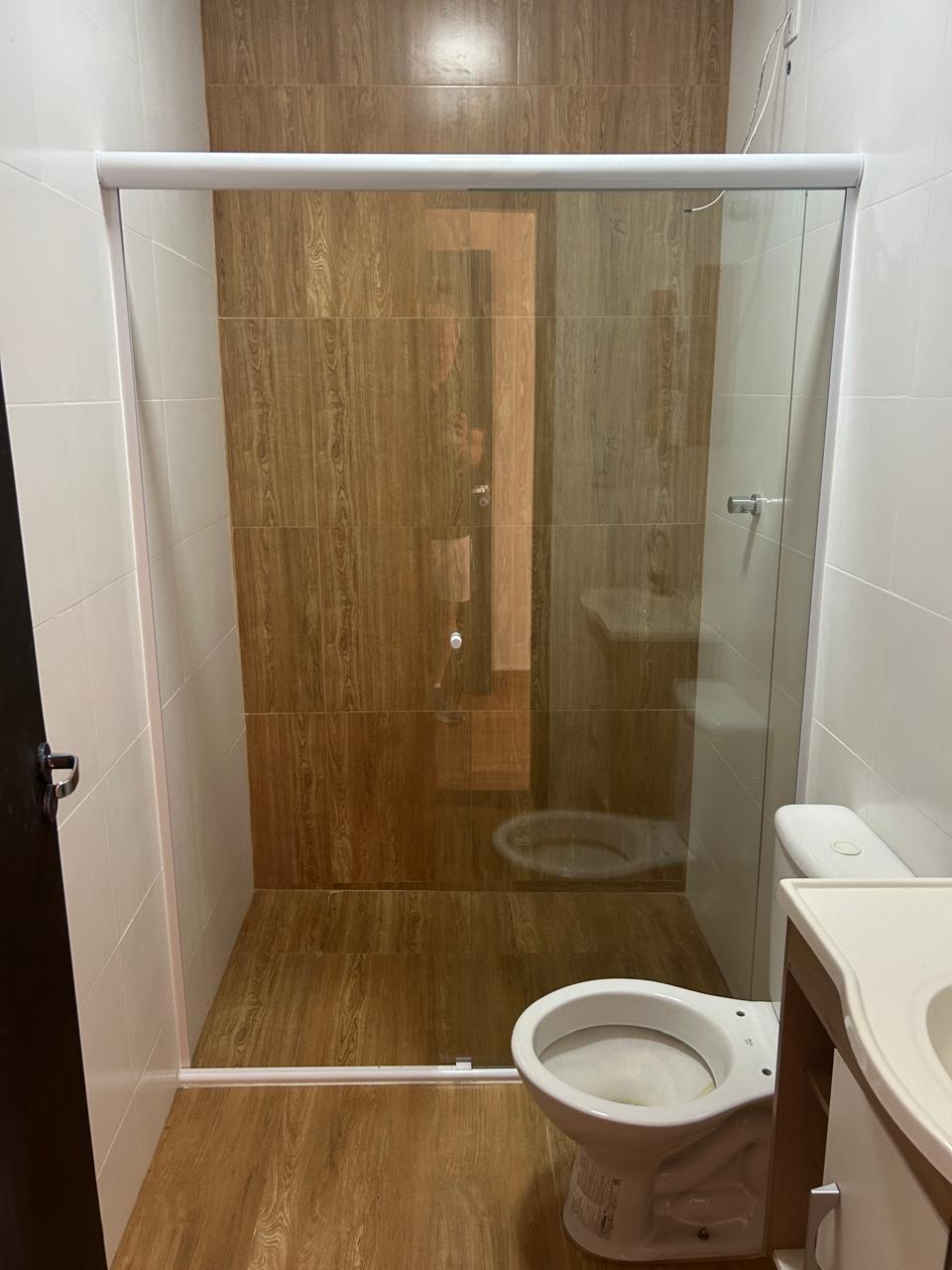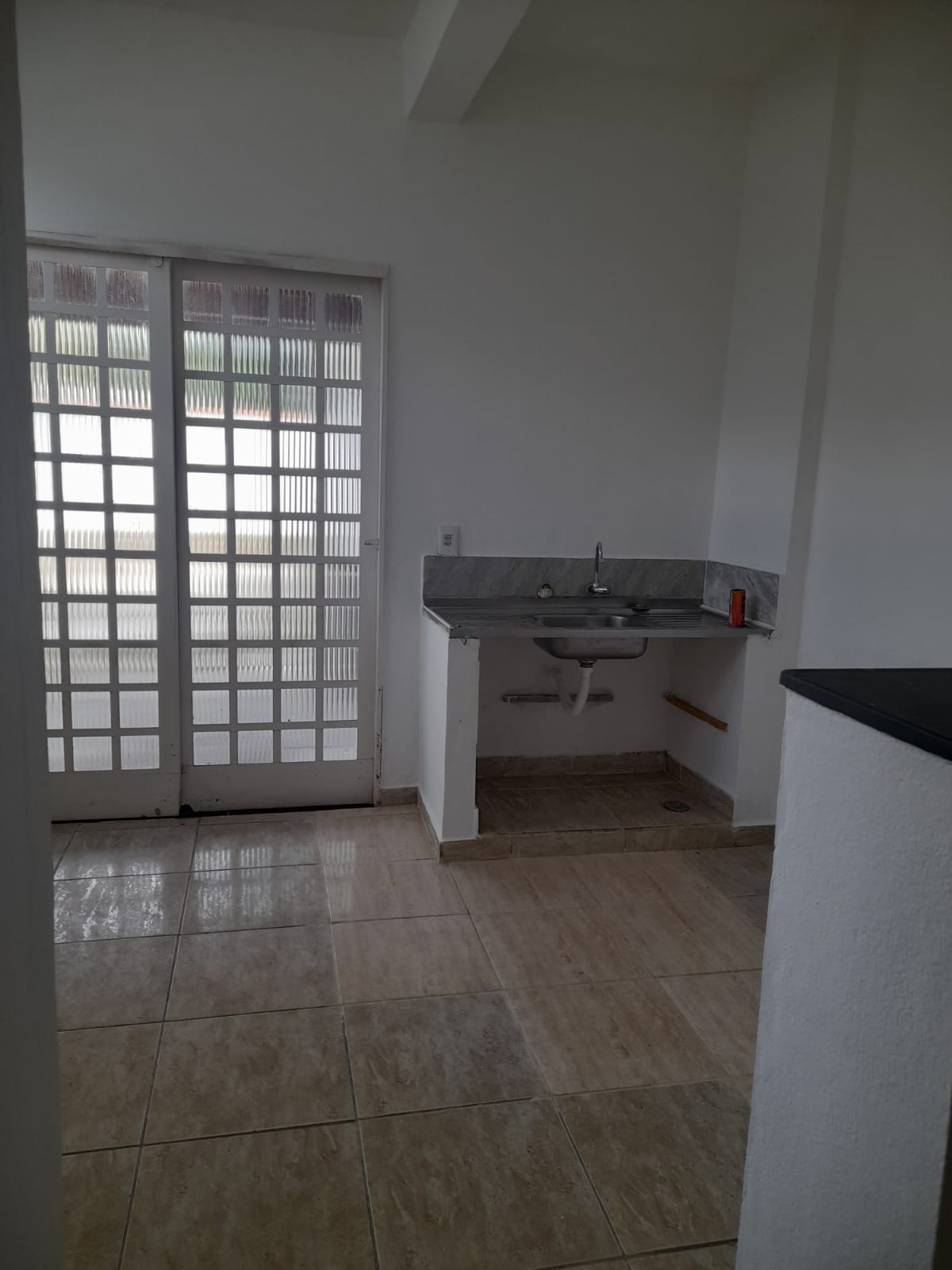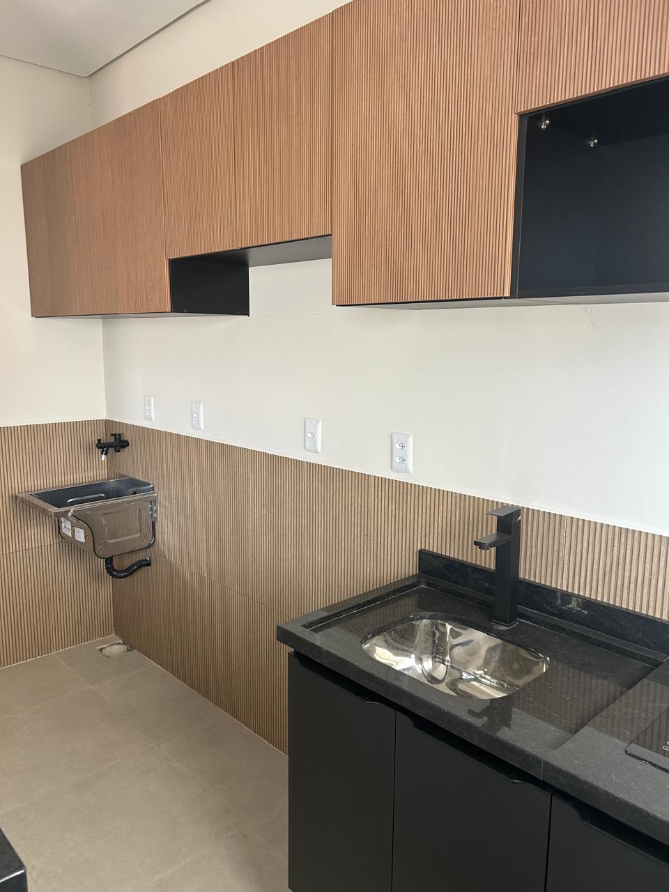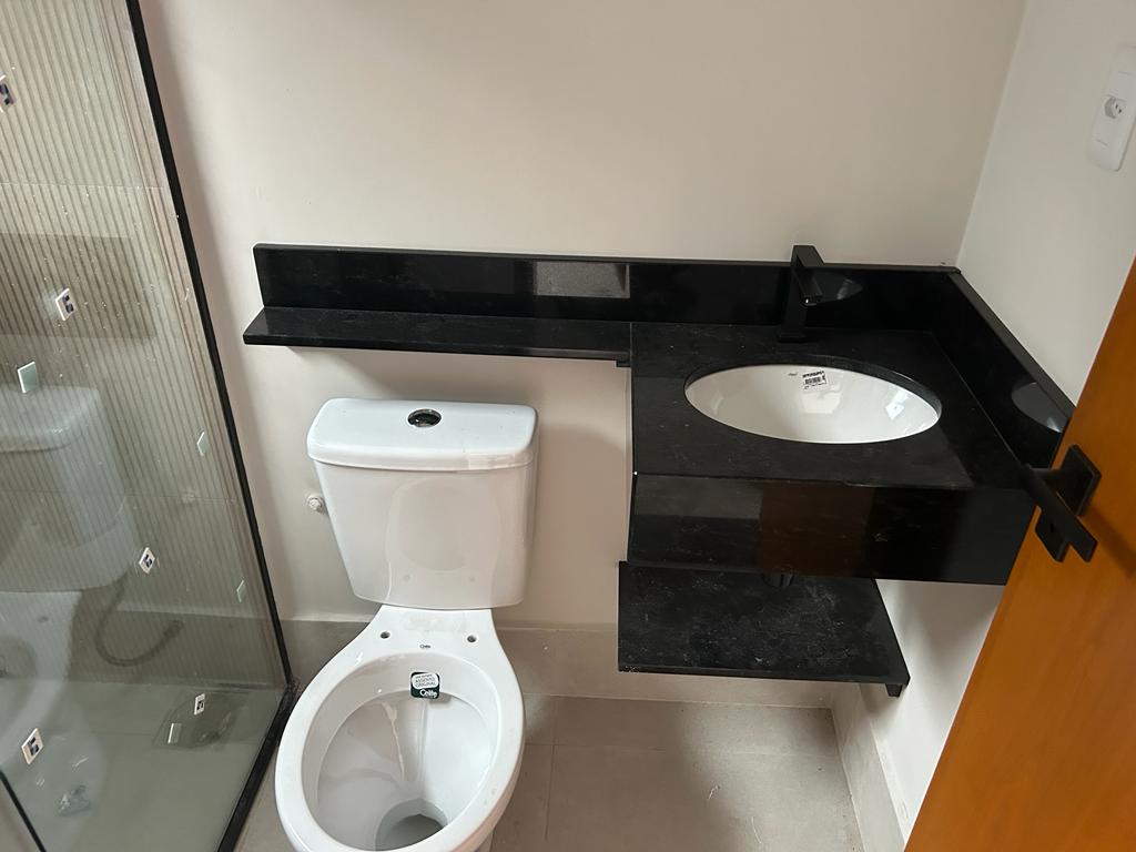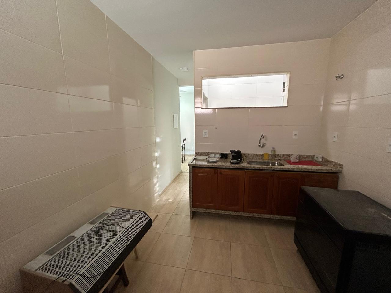 Descrição: Kitnet conjugada pia em granito, banheiro com box de vidro e lavanderia comunitária.